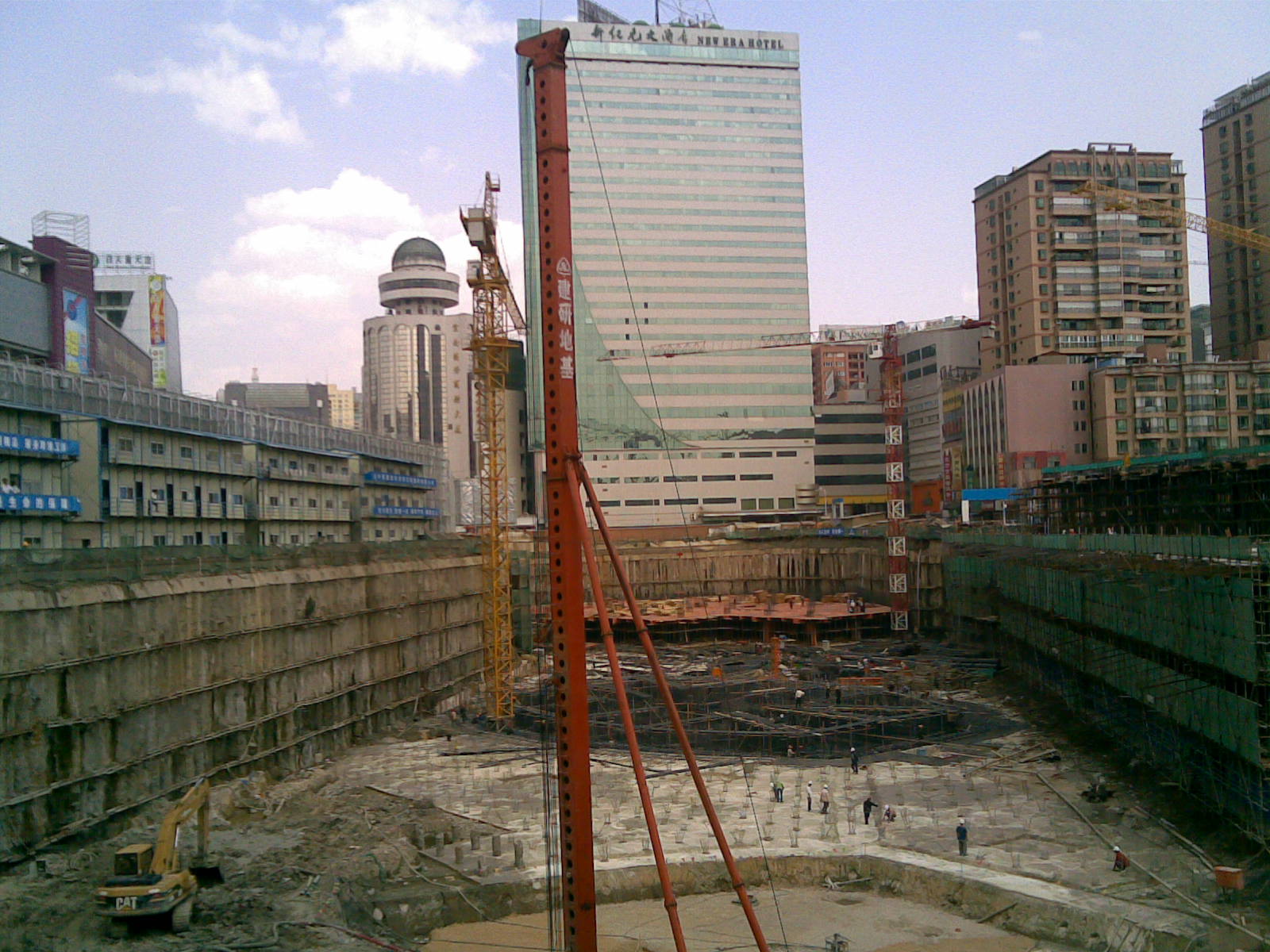 益田花园综合楼地下3层,地上34层,基坑深度13m,基坑支护采用地下连续墙与钢筋混凝土环形内支撑结构,地下连续墙同时作为地下室外墙。