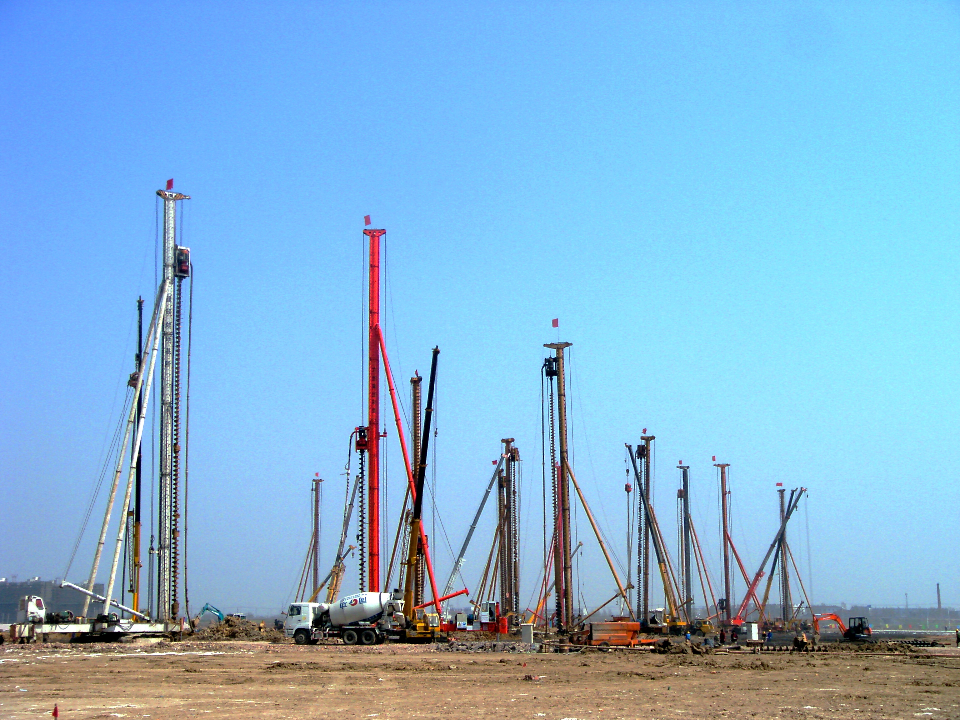 工程占地约60万㎡,建筑面积约70万㎡,主要由6座大柱网多层厂房及附属建筑组成。公司独立承包桩基础、地基处理、基坑支护、土方等施工,成桩总数约2.4万根,采用 “长螺旋水下灌注桩后插钢筋笼施工工艺及设备”专利技术进行施工。