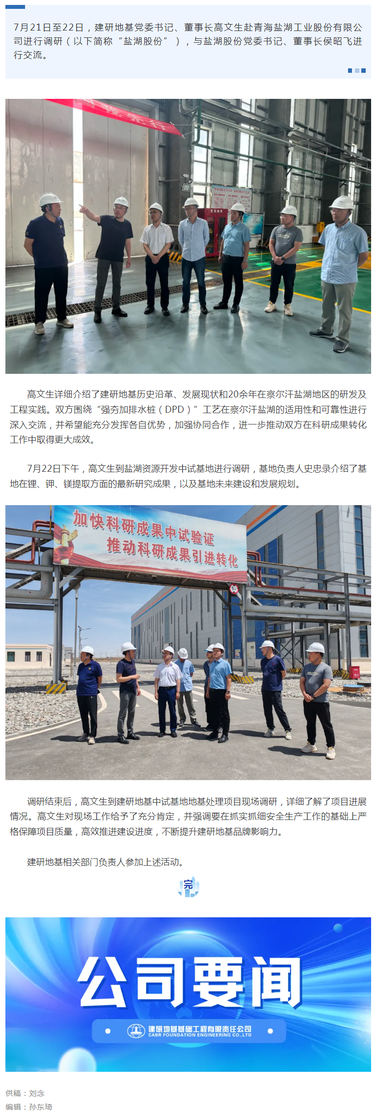 建研地基党委书记、董事长高文生赴青海盐湖工业股份有限公司调研交流