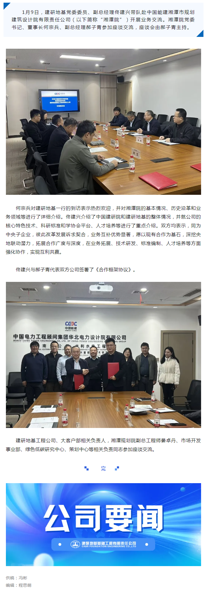 建研地基副总经理佟建兴率队赴中国能建湘潭院开展业务交流