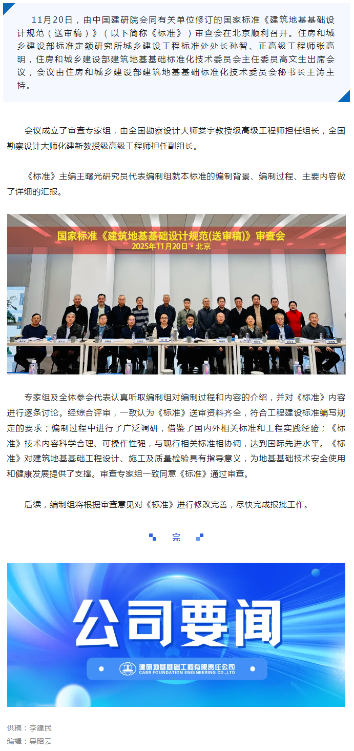 国家标准《建筑地基基础设计规范(送审)》在京顺利通过审查