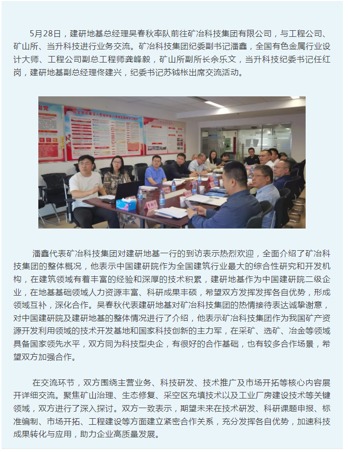 深化合作 共谋发展 | 建研地基到矿冶科技集团交流