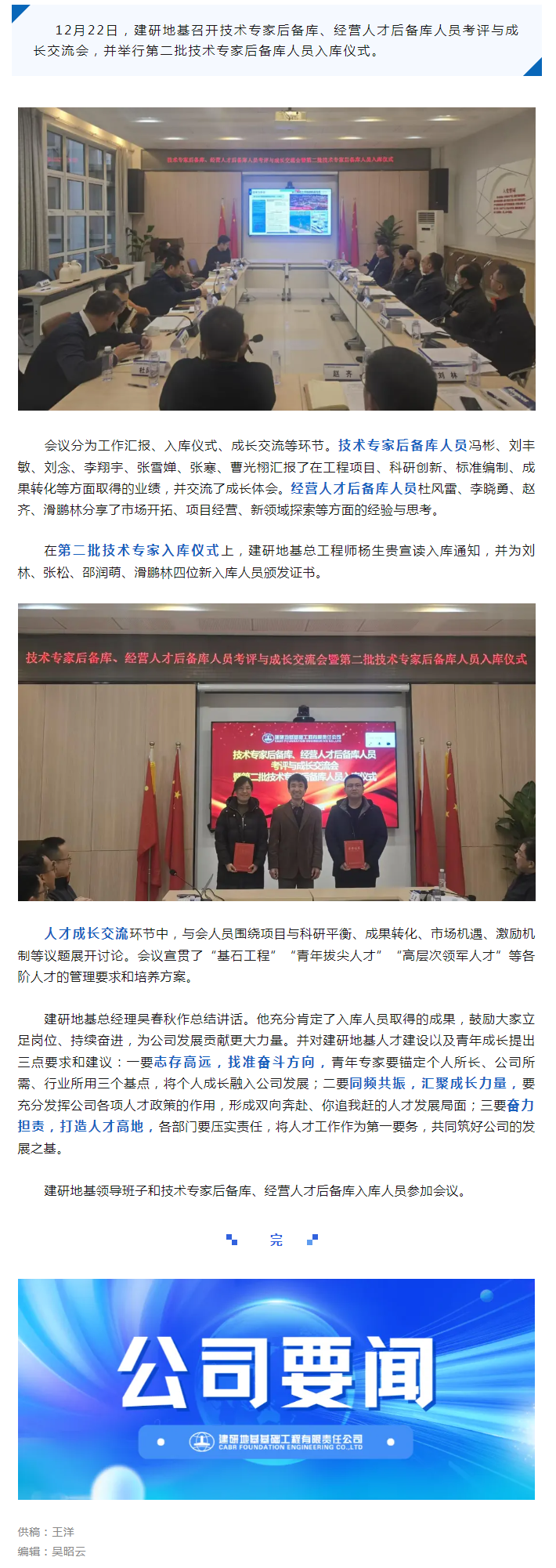 建研地基成功举办技术专家后备库、经营人才后备库人员考评与成长交流会暨第二批技术专家后备库人员入库仪式