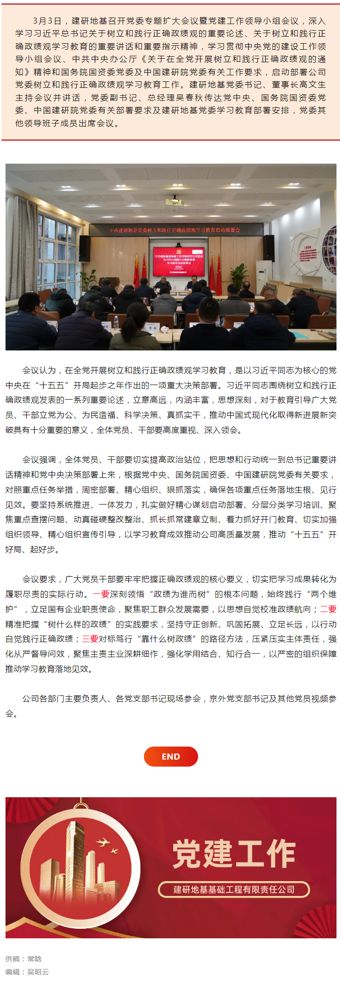 建研地基党委召开树立和践行正确政绩观学习教育启动部署会