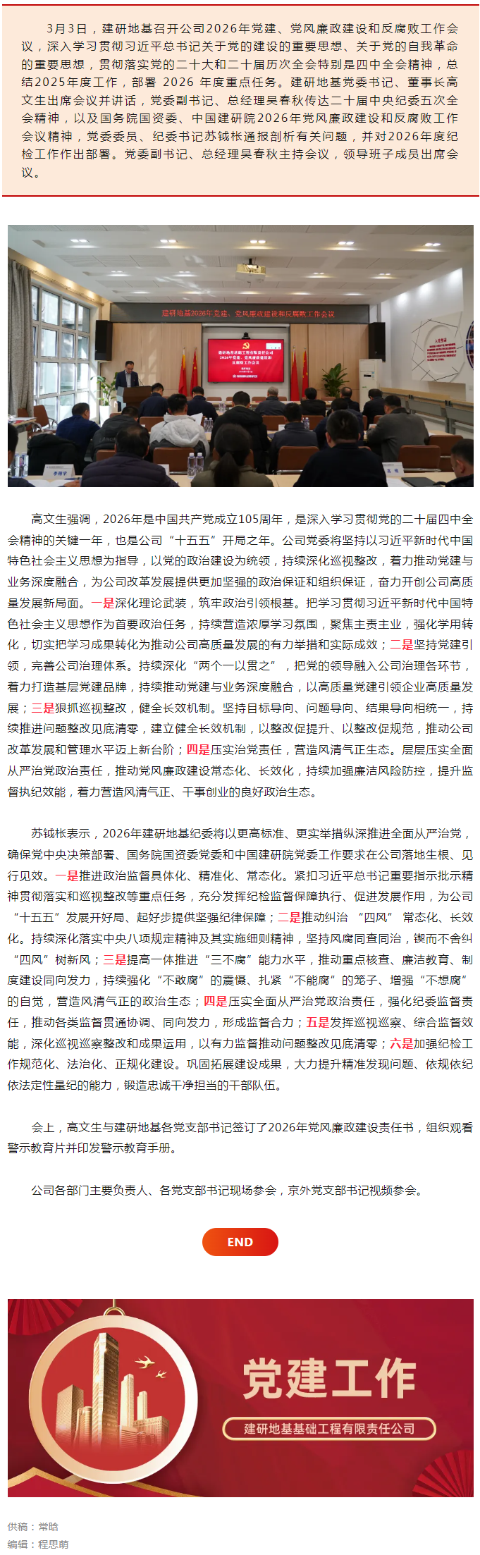 建研地基召开2026年党建、党风廉政建设和反腐败工作会议
