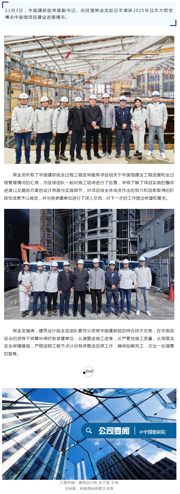 中国建研院总经理樊金龙赴2025年日本大阪世博会中国馆全过程工程咨询项目施工现场调研