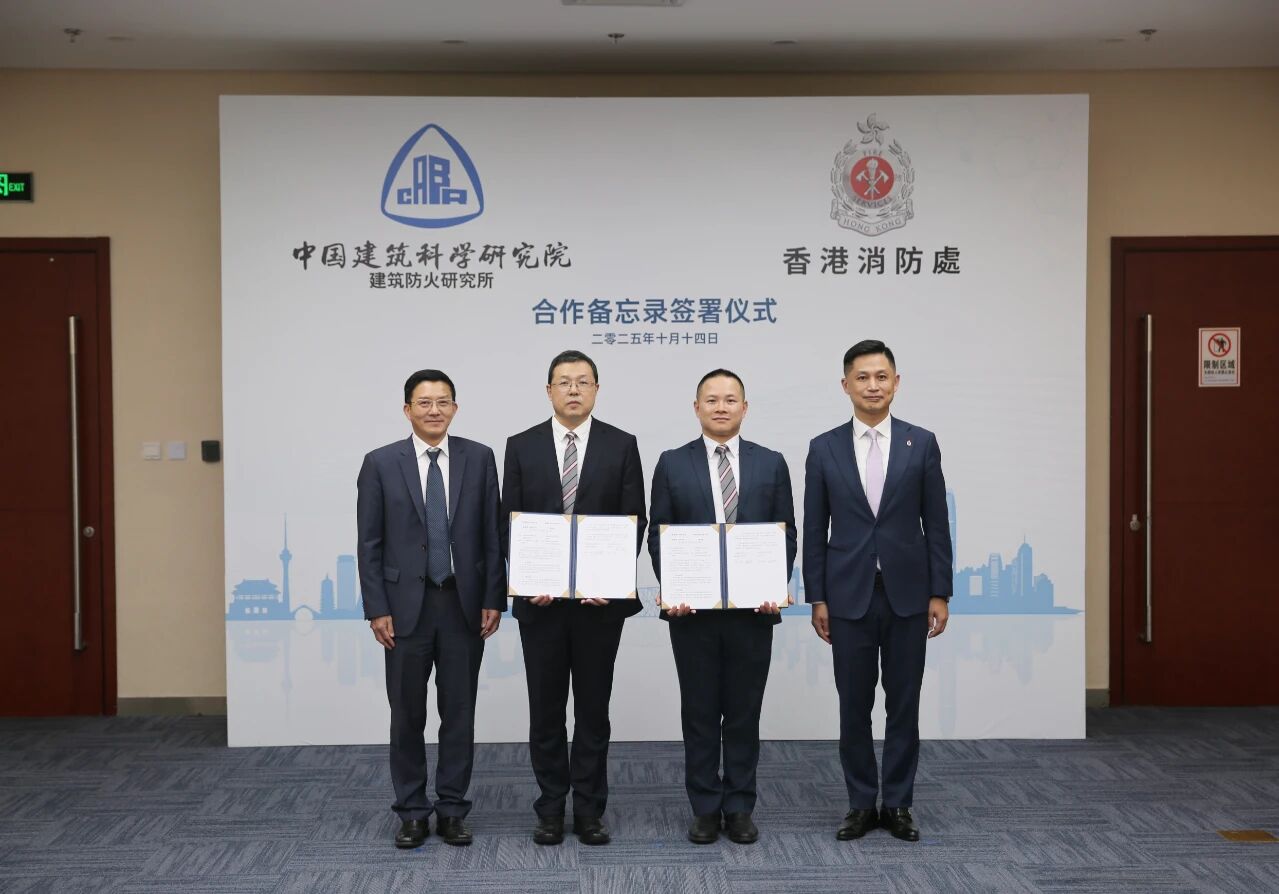 中国建研院建筑防火研究所与香港消防处举行合作备忘录签署仪式。