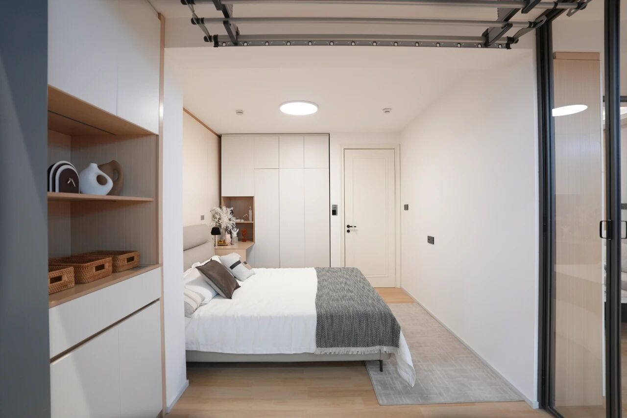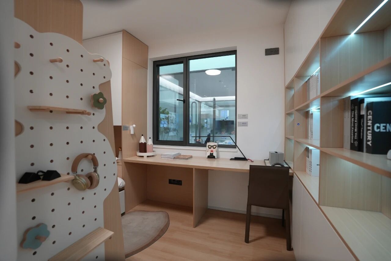在“经济实用”方面,样板房通过空间灵活可变、精细收纳、节能低碳,把居住需求与成本控制进行统筹平衡。空间可变上,结构规则、灵活隔墙为户型格局调整提供基础,临时居住空间、可居家工作区域、洁具分离卫生间的设计,轻松适配两居、三居、多子女、适老化等多元化需求。风扇灯实现“照明+风扇” 二合一,既促进自然通风,又节约空调电耗。