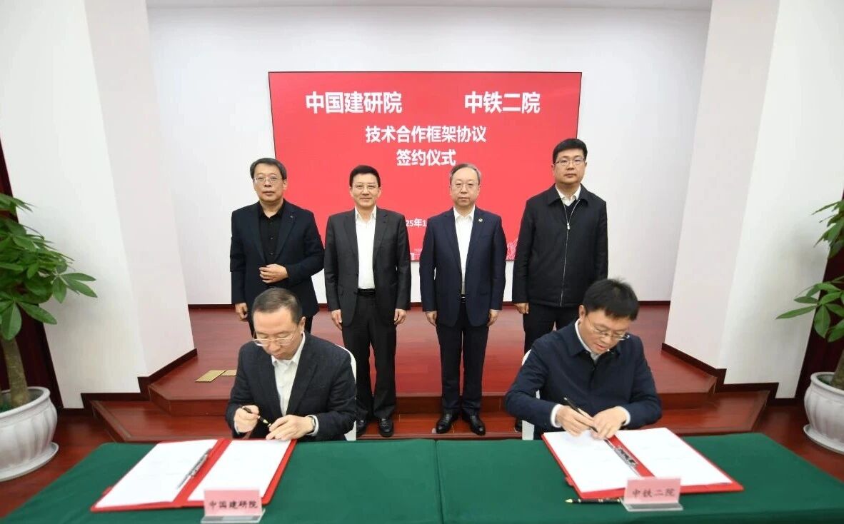 11月25日,中国建研院与中国中铁、中铁二院开展座谈交流,并与中铁二院签署科研协同创新战略合作协议,共同推动科研、产业协同创新。中国建研院党委副书记 、总经理樊金龙 ,副总经理毛军为,总工程师黄世敏;中国中铁党委常委、副总裁黄超;中铁二 院党委书记 、董事长杜建军 ,党委副书记 、总经理谢毅 ,总工程师、副总经理邓军桥出席签约仪式并参加座谈交流。