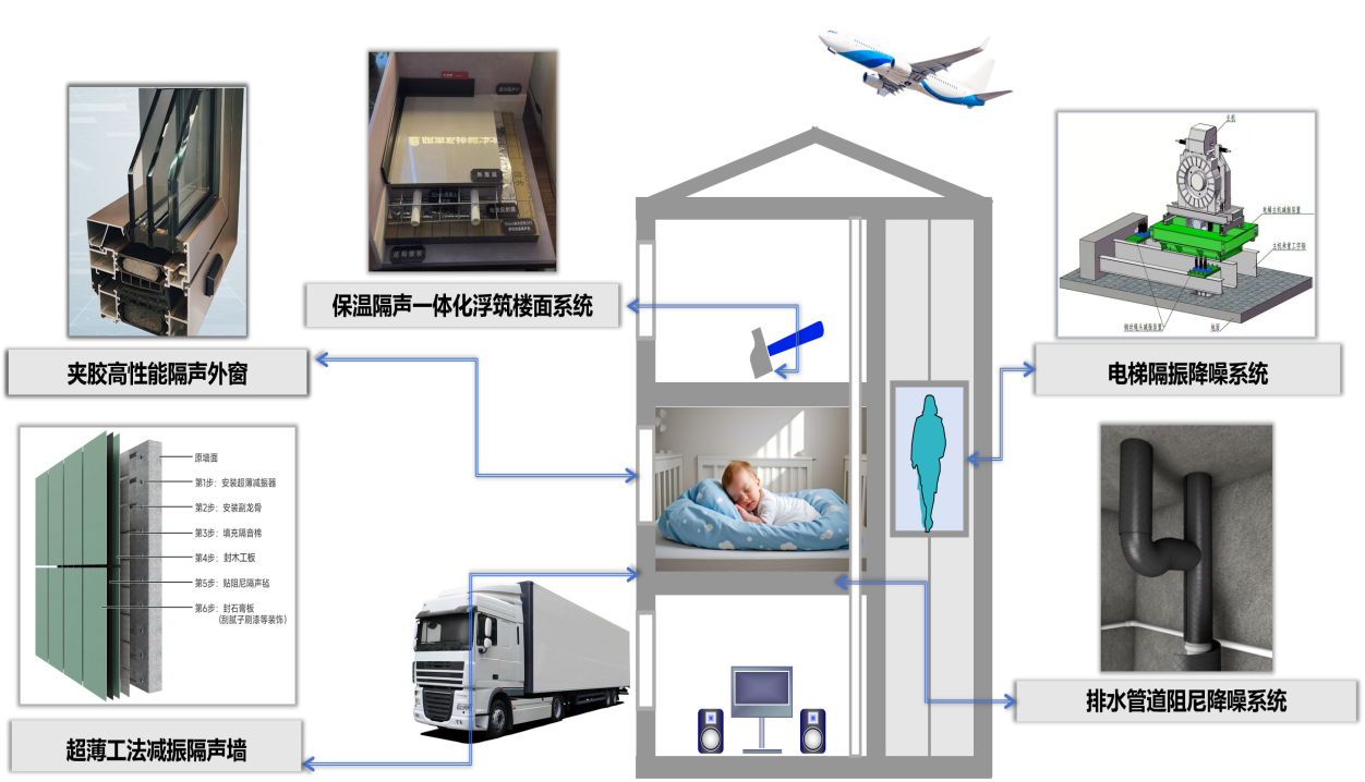中国建筑科学研究院有限公司创新性提出宁静住宅理念,建立宁静住宅评价标准,联合行业上下游,通过攻关适用产品、项目落地集成示范,建成了宁静住宅建设体系并规模化集成应用。