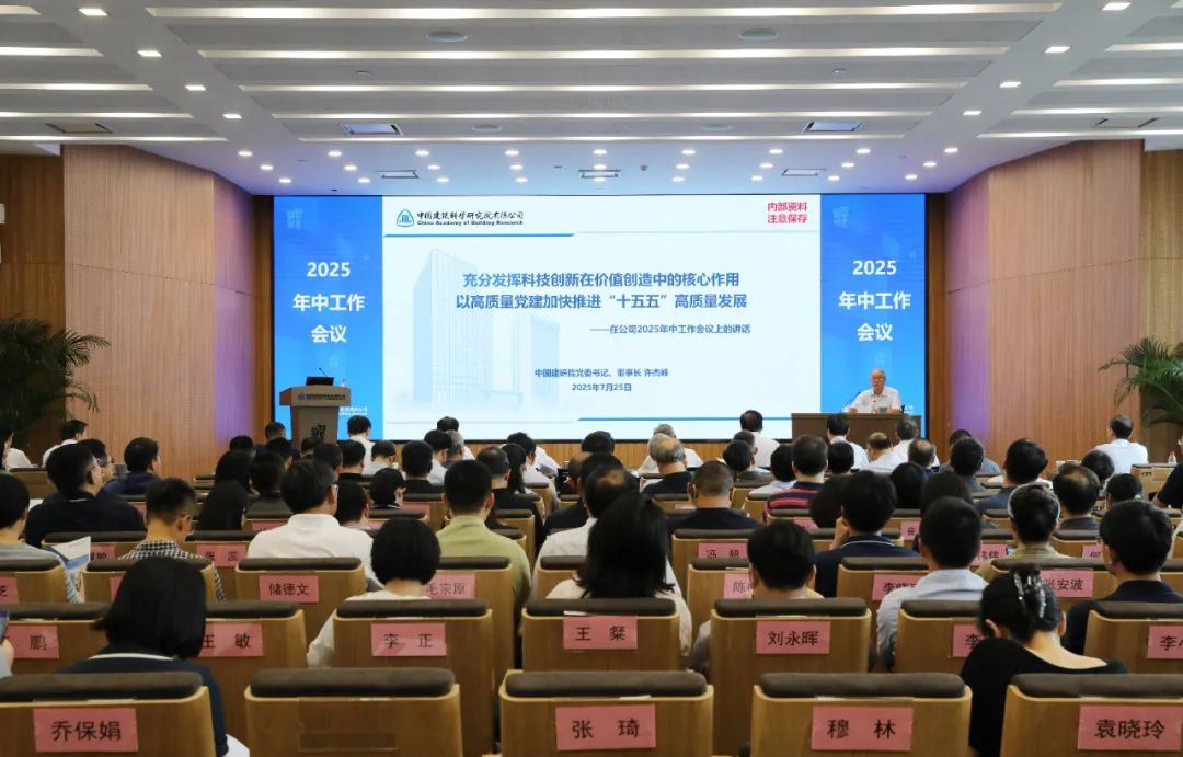 7月25日,中国建研院召开2025年年中工作会议。会议以习近平新时代中国特色社会主义思想为指导,全面贯彻党的二十大和党的二十届三中全会精神,认真落实党中央、国务院决策部署和国务院国资委工作要求,深入学习贯彻中央城市工作会议精神,贯彻落实中央企业负责人研讨班精神,全面总结公司上半年工作,研究部署下半年重点任务。中国建研院党委、董事会、经理层成员出席会议。会议分别由中国建研院党委副书记王阳,副总经理李军主持。