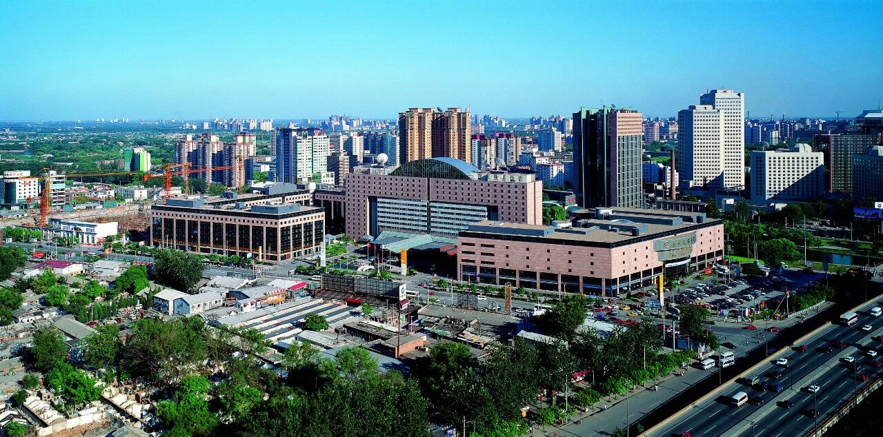 北京燕莎中心是20世纪90年代北京重要的地标建筑之一,以该项目为中心形成了著名的燕莎商圈。项目由中国建研院建筑设计院、德国诺沃特尼·曼纳建筑师事务所、德国菲利普·霍兹曼建筑公司联合设计完成,总建筑面积16.4万平米。建筑的立面设计沉稳而典雅,总平面布局借鉴了北京四合院的理念,形成了以凯宾斯基酒店为中心,西侧布置燕莎友谊商城,东侧布置办公和公寓建筑。三部分建筑以院落相联系,结合中国古典园林的设计理念,实现了闹中取静的园林空间。建筑的室内空间尺度宜人,大方而紧凑,流线简洁清晰,体现了人性化的设计宗旨。