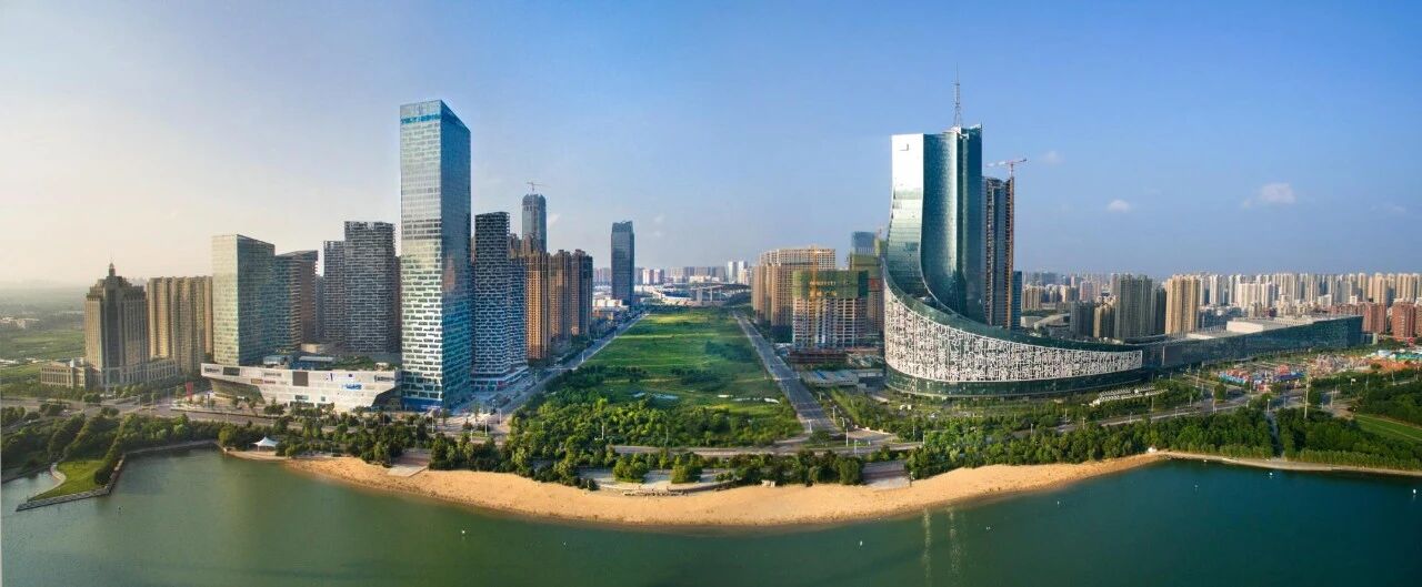 合肥·新地中心是由商业、办公、住宅、底层商铺、配套及会所等业态组成的多元化、多层次的城市综合体,由中国建研院建筑设计院和维思平建筑设计联合国际咨询(北京)有限公司共同设计完成。项目地上建筑面积41.9万平米,地下15.1万平米,包括3栋超高层办公楼及高度28米的商业建筑、5栋超高层住宅、底层商铺、配套及会所。作为合肥政务新区的地标建筑,项目的位置优越,与同为中国建研院建筑设计院承担设计工作的安徽省广播电视新中心成为“安徽之门”遥相呼应。各个超高层建筑的造型清秀挺拔、飘逸通透,并营造较大尺度的地面和空中院落、广场及庭院等外部空间。住宅建筑充分考虑合肥地区的气候特点,采用长板式、南北朝向,确保日照通风条件的良好,与其他建筑相融合,并与城市景观相衔接。中国建研院中建研科技为项目提供节能设计。